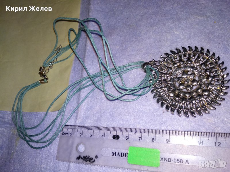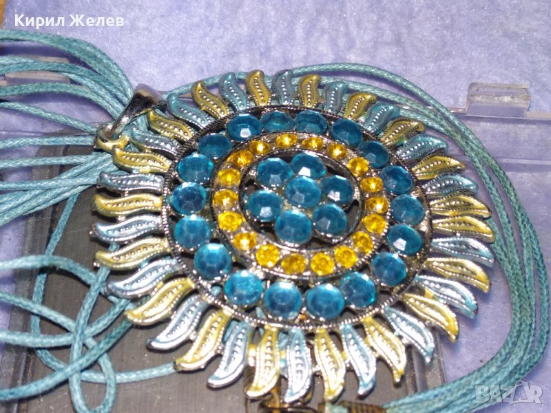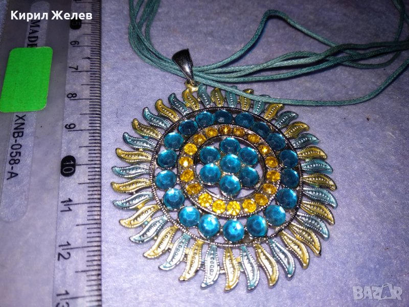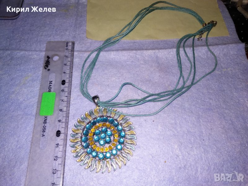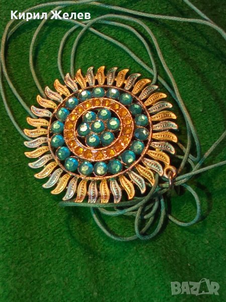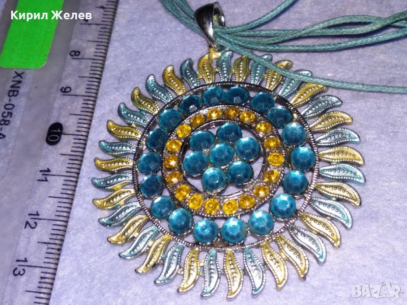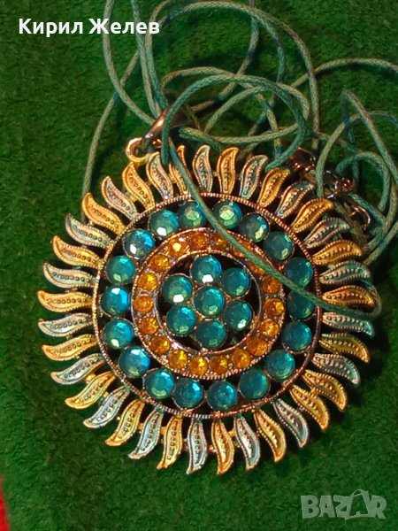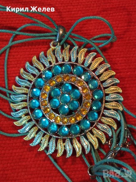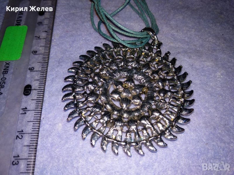 ПОСРЕБРЕН ФЛОРАЛЕН КРИСТАЛЕН БЛЕСТЯЩ АРТ МЕДАЛЬОН КОЛИЕ 33119