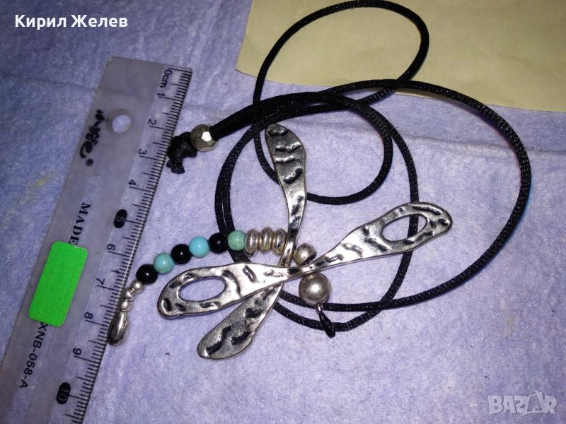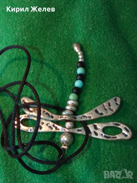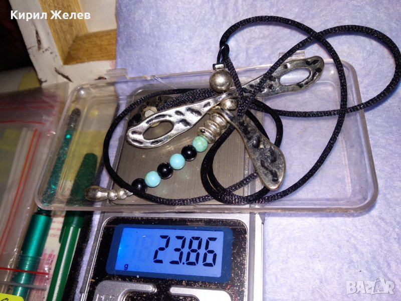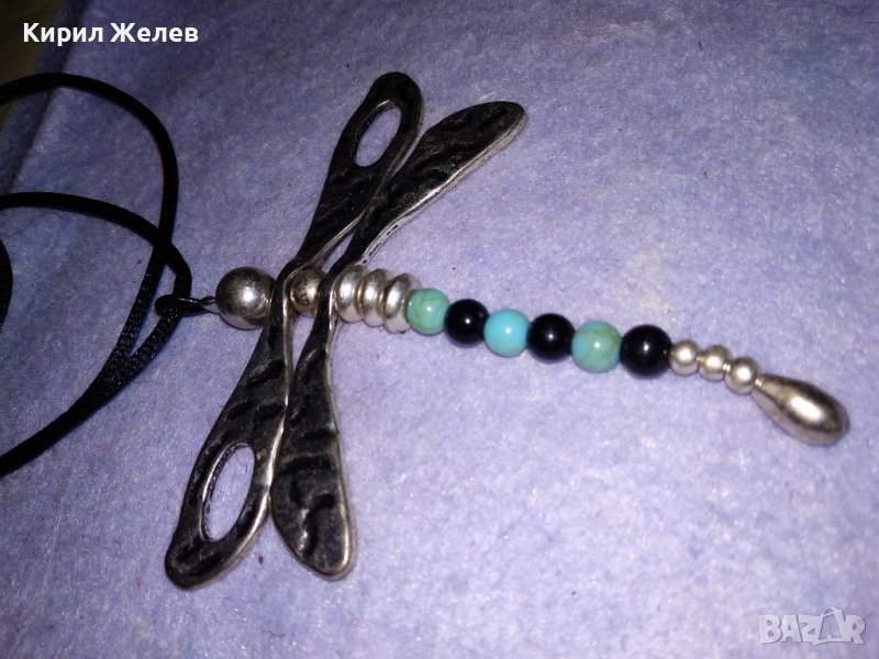 ПОСРЕБРЕНО ТЮРКОАЗЕНО ВОДНО КОНЧЕ ФИГУРАЛЕН АРТ МЕДАЛЬОН КОЛИЕ РАЗДВИЖЕН 34737