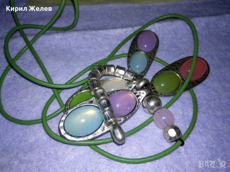 ПОСРЕБРЕНО КРИСТАЛНО ВОДНО КОНЧЕ ФИГУРАЛЕН АРТ МЕДАЛЬОН КОЛИЕ РАЗДВИЖЕНО 34742