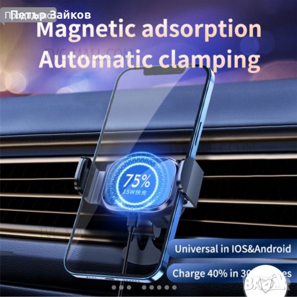 OPEN ONE Магнитна стойка за безжично зарядно устройство за кола с автоматично затягане