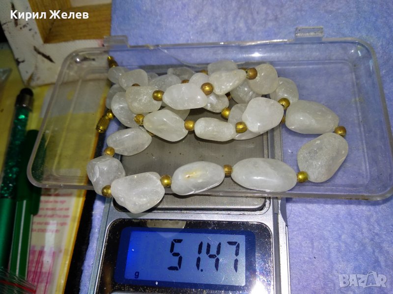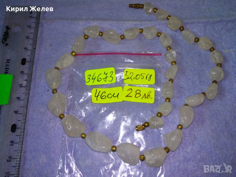СТАРО СКЪПОЦЕННО КОЛИЕ НАТУРАЛЕН МЛЕЧЕН КВАРЦ с БРОНЗОВА ЗАКОПЧАЛКА на ВИНТ 34673