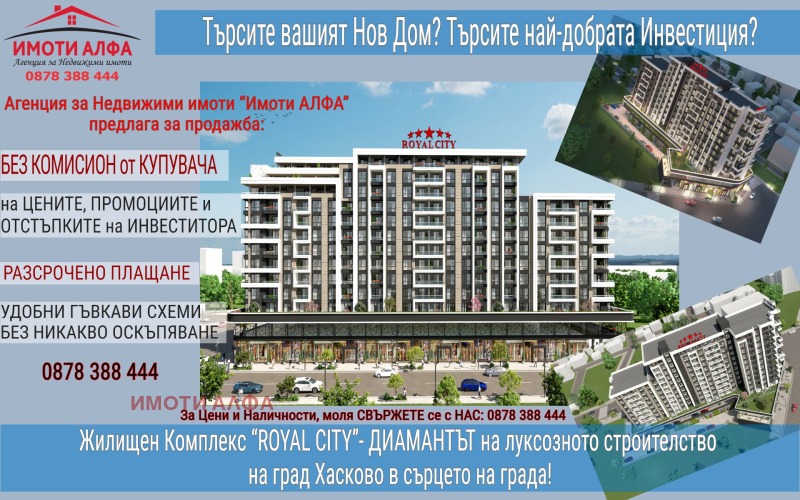 ✅ Ново строителство, в Жилищен Комплекс ROYAL CITY , в Централната част на гр. Хасково на бул. Съединение до Автогара Хасково и срещу бившата Военна болница