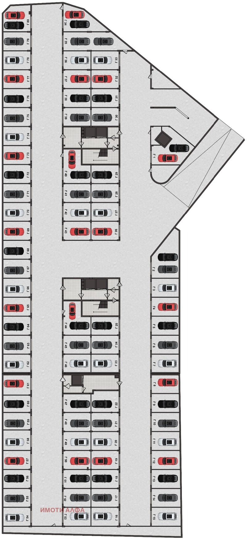 ✅Подземен Паркинг със 182 Гаража, разположени на 2 Нива за живущите в сградата, с Топли връзки към Жилищната част и автоматични повдигащи се врати HORMANN