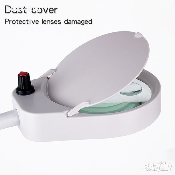 Настолна лампа с лупа със силно осветление което може да се регулира, голямо увеличение от 15X петнадесет пъти и 5X пет пъти