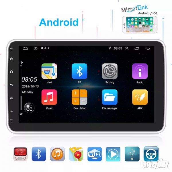 10'' инчов, супер голям екран, Android , Bluetooth, USB, WiFi и други
