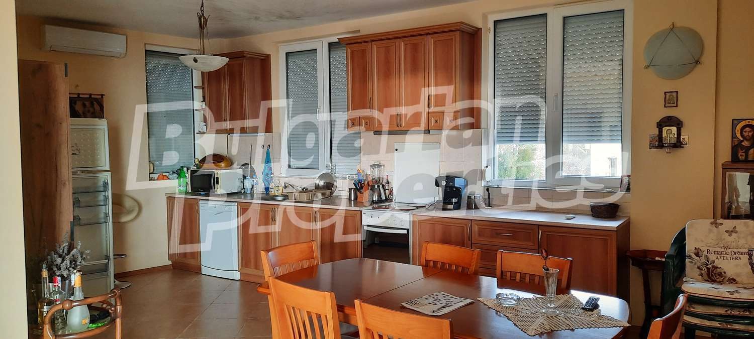 Първи етаж - голяма всекидневна с кухня, тоалетна, три спални всяка с баня и тоалетна. Голяма тераса с просторна гледка към морето. Втора тераса с гледка към задния двор. Настилки теракота и ламинат, ПВЦ дограма, стени боя. Към втория етаж се стига по външни стълби и отделен вход.