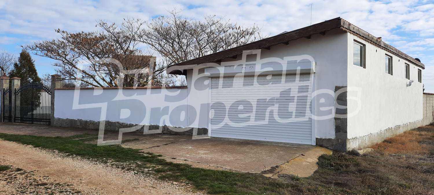 В градината има гараж общо 75 кв. м., който може да се използва и като килер.