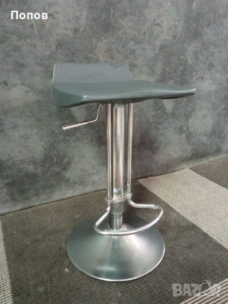 Бар стол пластмасова седалка полирана алуминиева основа повдигащ механизъм много добро състояние