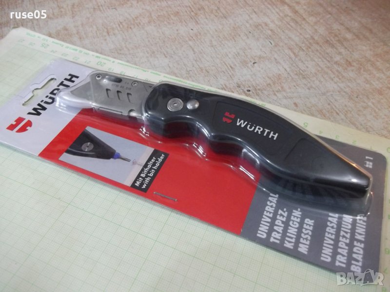 Нож "WÜRTH" макетен с трапецовидно острие и държач за битове → Обява 39204207