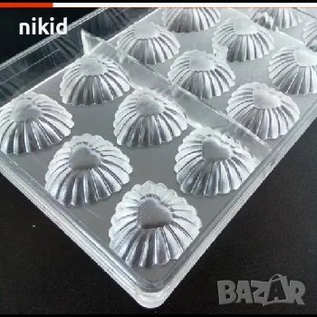 18 сърца сърце с къдрички пластмасова форма Поликарбонатна отливка калъп Шоколадови бонбони → Обява 39206137