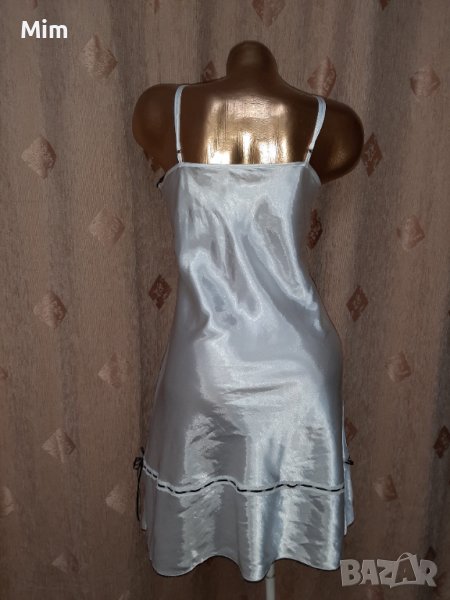 Бяла сатенена нощничка с мека чашка регулируеми презрамки,на бюста с черна дантелка и бродерия отдолу с цепка и сатенена лента. Под мишниници 50 см едностранно,,дължина от подмишници 70 см .неразличима от нова без хартиен носител