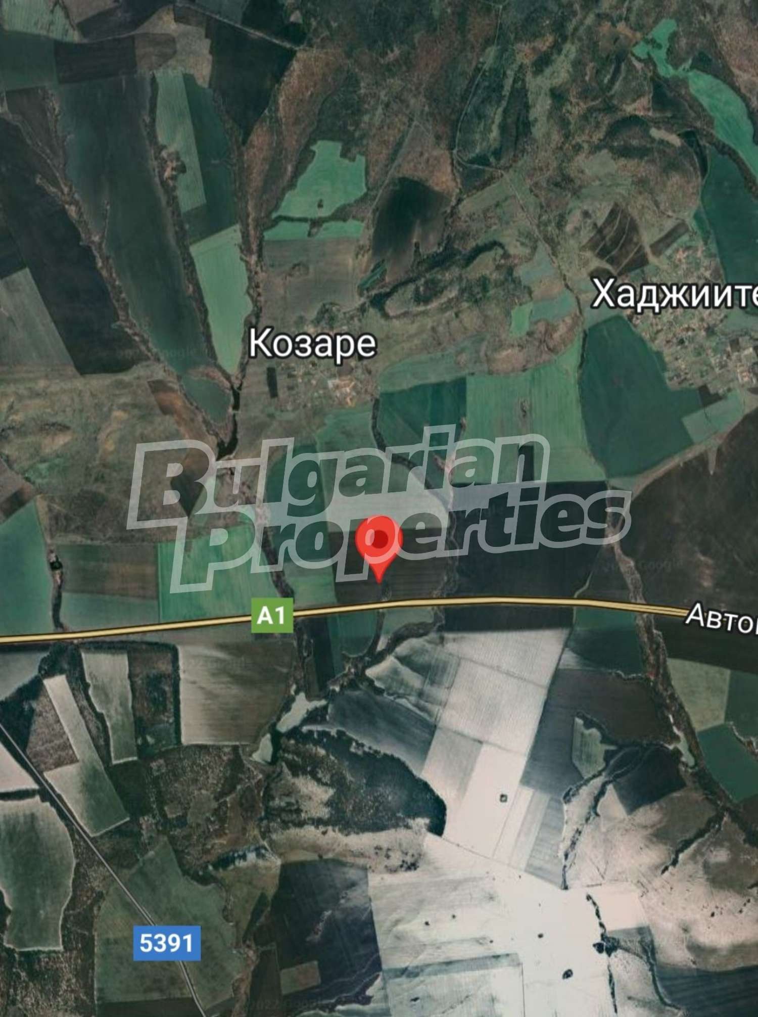 Голям поземлен имот с площ от 15560 кв.м. на автомагистрала Тракия на 30-тия километър от Бургас в посока София, на 5 км преди отбивката за гр. Карнобат, между селата Козаре и Хаджиите.