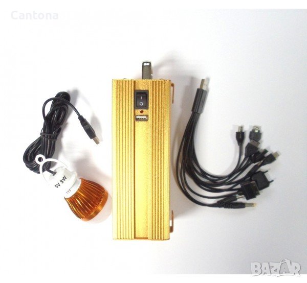 Акумулаторното осветление може да се използва като аварийно зарядно за мобилни устройства, USB изход 5V. Системата се зарежда от мрежата или на открито от слънчевия панел.