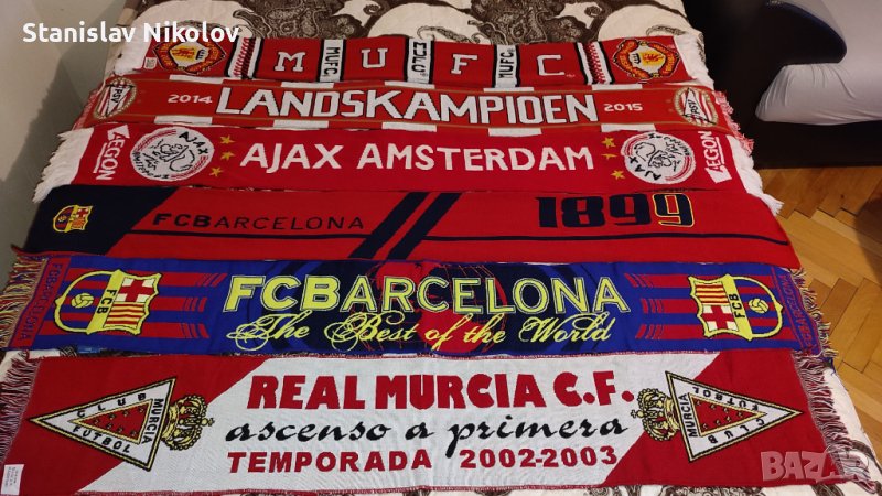 Футболни шалове на Олимпиакос, Интер, Аякс, Барселона, Ман. Юнайтед → Обява 39214457
