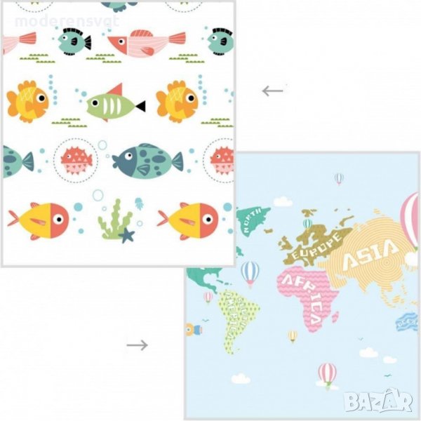 Двулицево сгъваемо килимче за игра от XPE материал - два модела таралеж и пътища, риби и атлас