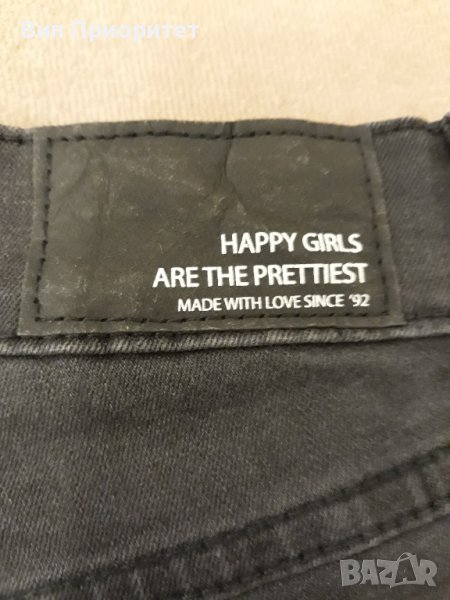 HAPPI GIRLS дънки , чисто нов , дълъг , гарваново черно, с гайки и с джобове отзад .