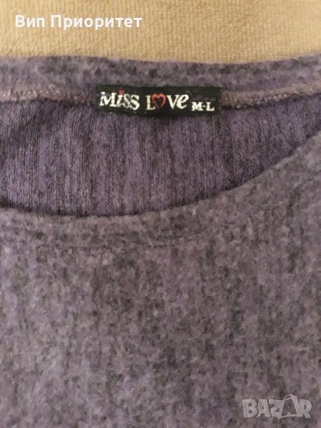 Лилава блуза Хелло - изключително приятна материя - мека , удобна, красива . Бродиран надпис с перли → Обява 39217764