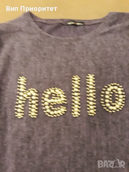 Лилава блуза Хелло - изключително приятна материя - мека , удобна, красива . Бродиран надпис с перли