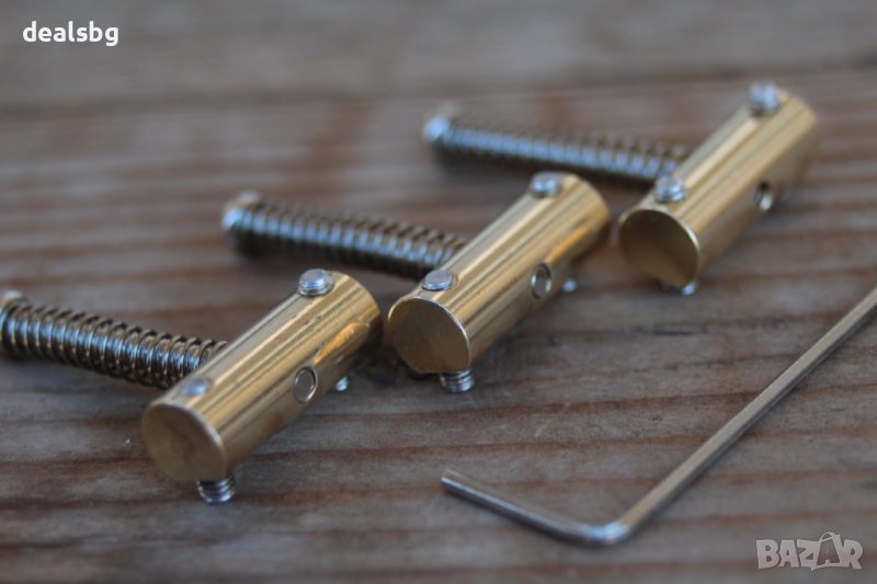 Класически телекастърски бридж седла. 21мм, компенсирани. Барелчетата са МЕСИНГОВИ, което предава състейн и по отчетливи обертонове на любимото ви теле.