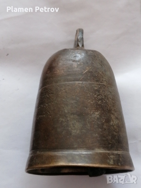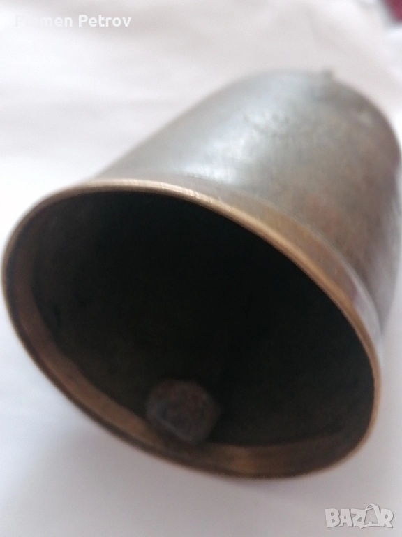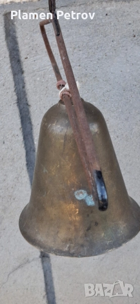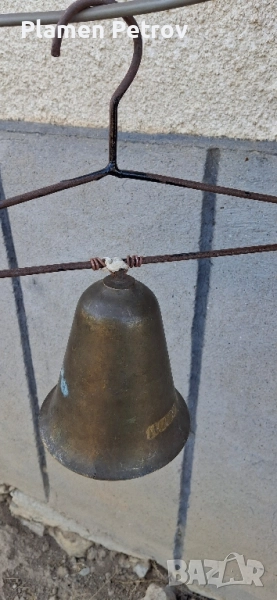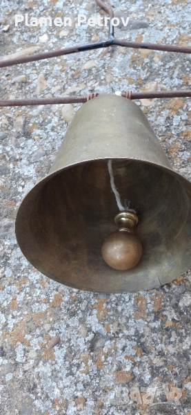 Стара бронзова брошка с камък, работеща закопчалка, ръчна изработка с размери от дължина 5,5 см и ширина 3 см, 2броя звънци