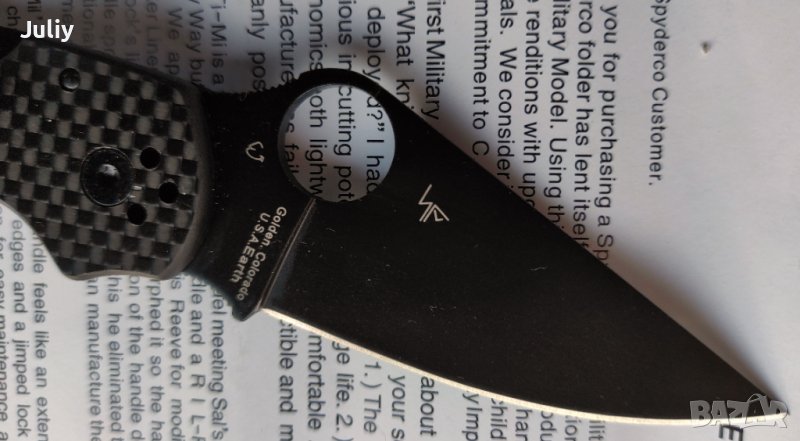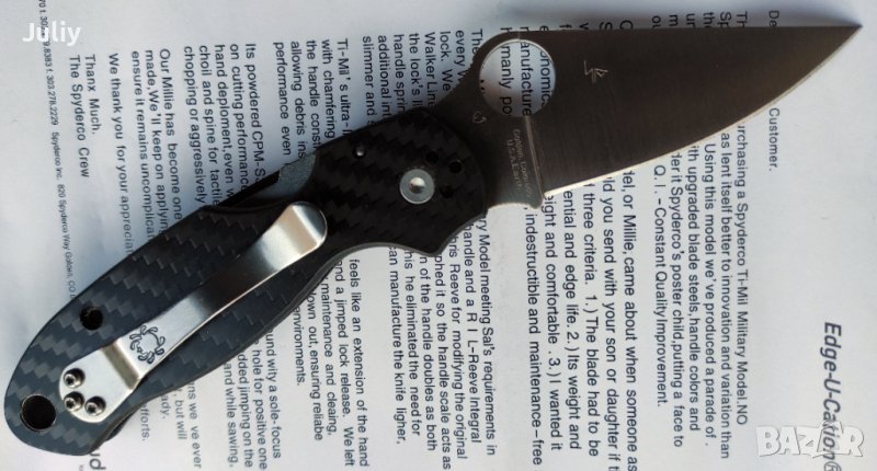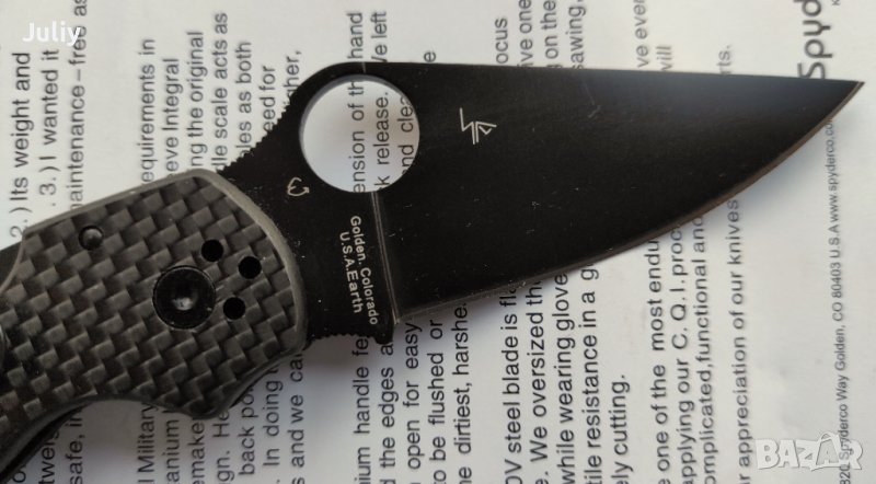 Традиционно острието е с просто и ефективно решение, което улеснява отварянето на ножа с една ръка, така наречената "Spyder-hole".