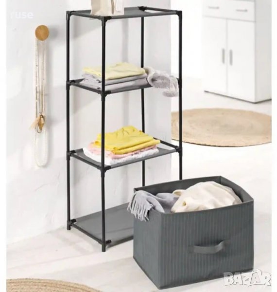 Метална етажерка с 3 текстилни рафта и включена текстилна кутия за съхранение!