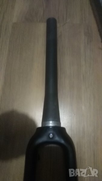 Вилката е без ос. Оста е 125мм с 9мм резба на 1.5мм. Има протрито до спирачният диск но това не пречи на работата. Стержена е 26см. 49мм офсет. Директен монтаж на планински калипер на 160мм диск