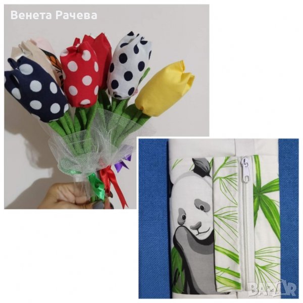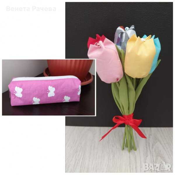 5.Букет 3 бр. текстилни цветя+несесер за гримове-20 лв