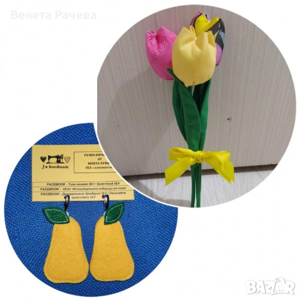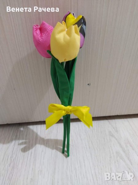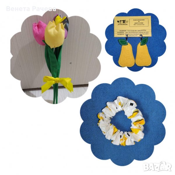3.Букет 3 бр. текстилни цветя+обеци с форма по избор-25 лв