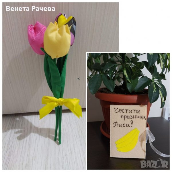 13.Букет 3 бр. текстилни цветя+картичка от филц-19 лв