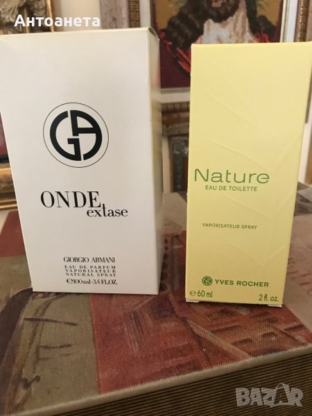 Представям Ви,два парфюма които вече не се предлагат.Giorgio Armani Onde extase EDP 75/100мл.бач код 28E92S цена-100 лв. Парфюм на Yves Rocher Nature-продаден