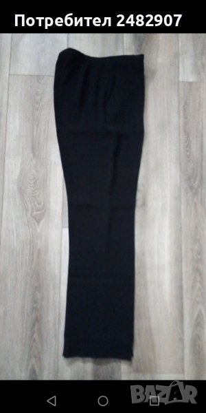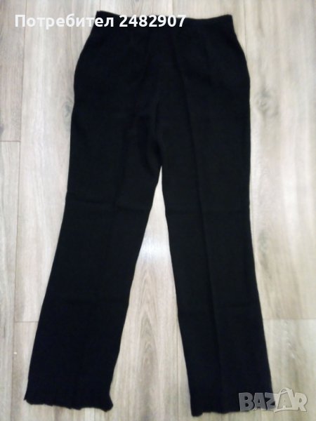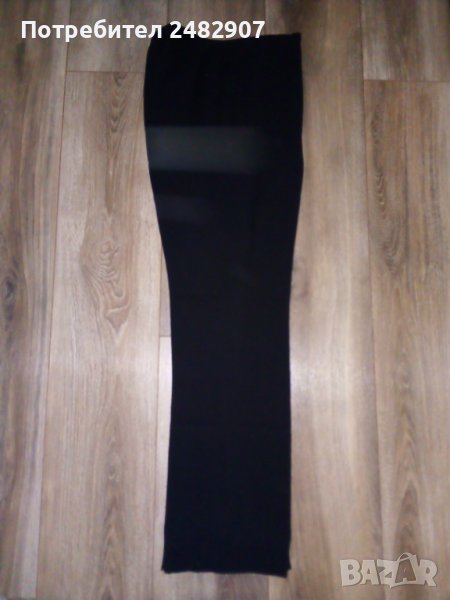 Дамски черен панталон с два джоба и къдри в долната част на крачолите. Ширина в талията - 37 см, дължина от талията до чатала - 30 см, дължина от талията до долната част на крачола - 97 см. Закопчаване с цип, вътрешно и външно копче. Много запазен, почти не е използван.