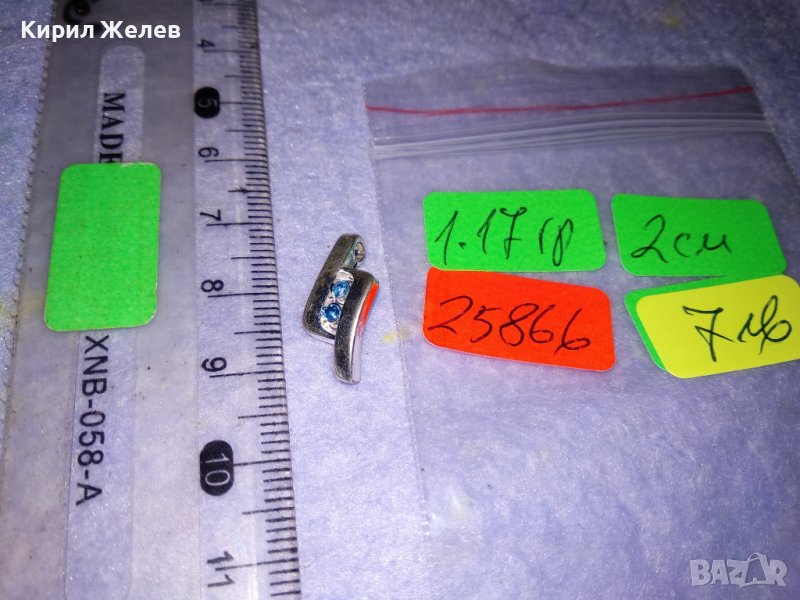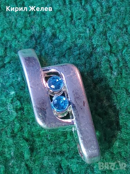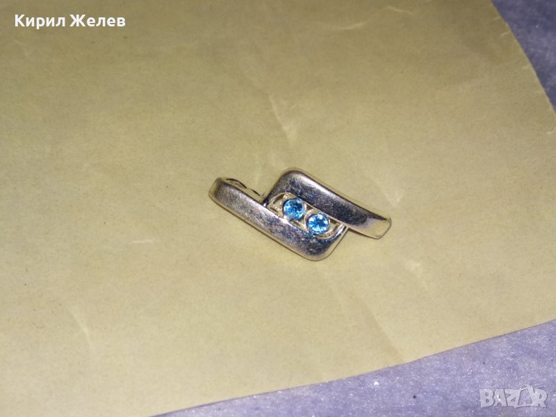 КРАСИВО СКЪПОЦЕННО МЕДАЛЬОНЧЕ с БЯЛА ПОЗЛАТА и ФАСЕТИРАНИ СИНИ КРИСТАЛЧЕТА 25866