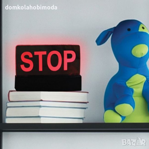 Надпис с червена светлинна основа "STOP" 18х3х12см