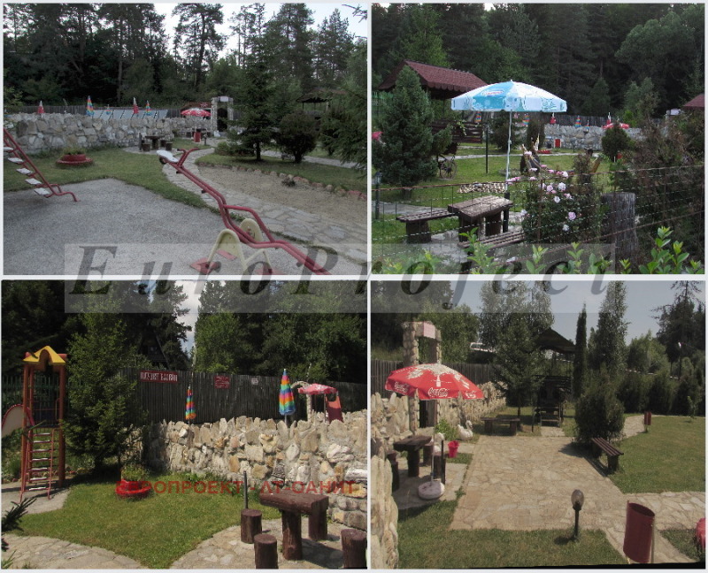 Функциониращ комплекс с двор 3456 кв.м. с преминаваща през него рекичка и заобиколен от борова гора. Комплексът разполага с рецепция, басейн, механа и 6 къщи с общ капацитет 65 легла. Всяка къща има голяма веранда. Три от къщите са на два етажа, а останалите са на три етажа. Разпределение на къщите: