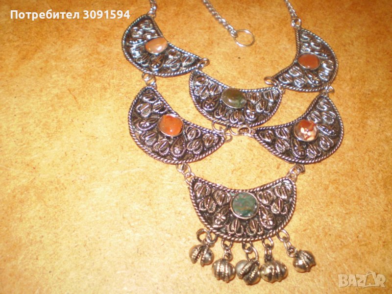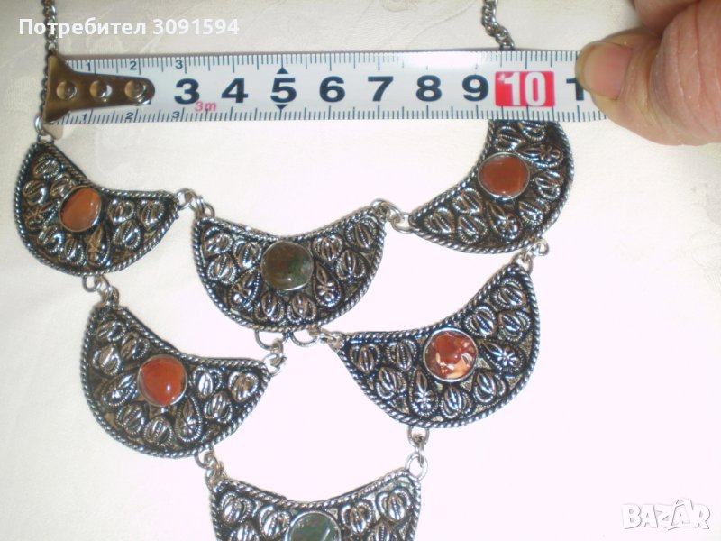 Ретро накит бял метал с ахат → Обява 39237735