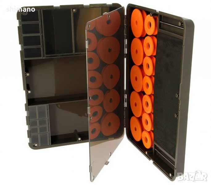 От едната страна е предвидено съхранение на монтажи тип класьор, включително ЕВА ролки за зиг риг монтажи. Има EVA борд, който може да побере около 20 готови монтажа плюс 7 малки и 5 големи оранжеви EVA ролки. Втората страна съдържа 26 отделения за съхранение в различни размери (идеални за малки терминални приспособления) плюс две по-големи открити складови площи. Предната част има мярка, която е чудесна за измерване дължината на монтажите.