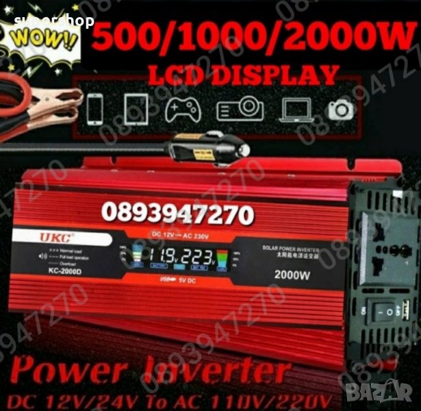 Тагове:инвертор,инвертер,преобразувател,акумулатор,напрежение,синусоида,кола,автомобил,камион,микробус,солар,12 волта,24 волта,12V,24V,UKC,display,invertor,inverter,solar,kamping,дисплей,УКЦ,лаптоп,телефон,промо,ниска цена,топ,намаление,промоция,promo,500W,1000W,2000W,3000W,4000W,каравана,вила,бунгало,риболов,мощен