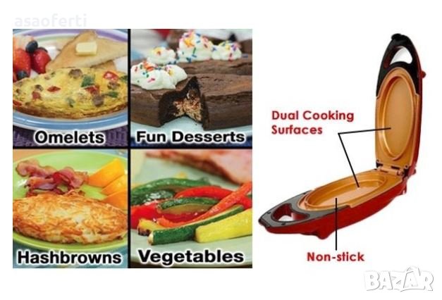 Приготвяте разнообразие от храни – бързи, вкусни и лесни гофрети, палачинки, сандвичи, омлети, мини пици, бургери, запечени сиренца, а дори и риба с хрупкава коричка. Без значение дали празнувате детски рожден ден, организирате градинско парти или просто искате да забъркате обяда си без да губите много време, уредът Red Copper Cheff ще приготви супер вкусните аламинути за 5 минути.