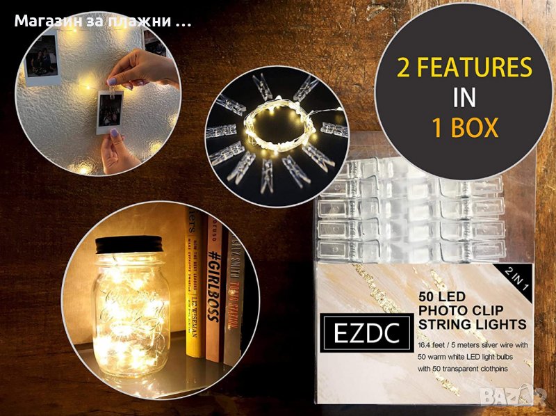Чудесен начин да изложите любимите си снимки! Магически изглеждаща лека верига с 50 щипки за прихващане на снимки или различни изображения.