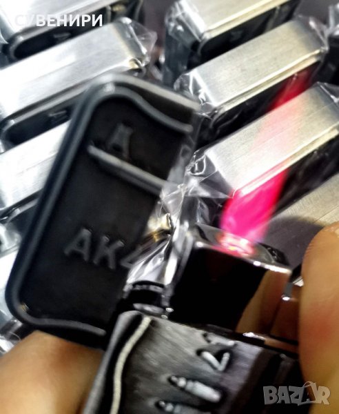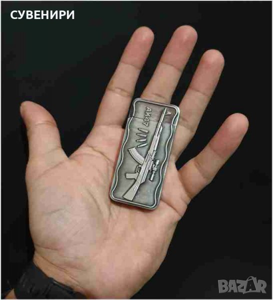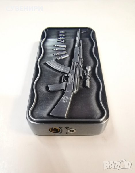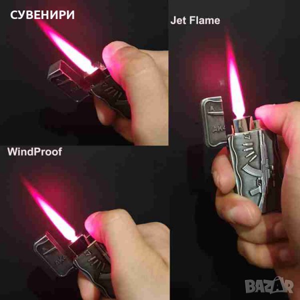 Запалка АК-47 ( автомат Калашников ) газова,ветроустойчива, за многократна употреба, червен пламък, Jet FLAME. Запалване с пиезокристал. Цвят тъмно сребрист.