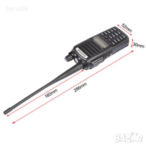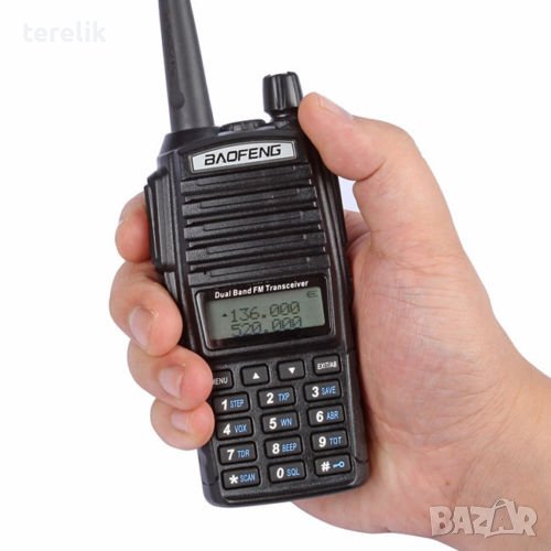 радиостанция с до 8 вата мощност на реномирания бранд в телекомуникациите Baofeng се отличава от всички други модели с по-силна антена, а оттам и с по-големия си обхват на комуникация. В зависимост от спецификите на терена с нея ще покриете приблизително между 5 и 10 км на открито.