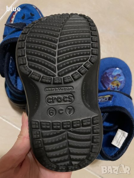 Кроксовете размер 6с7, с пухена несваляща се подплата.Маратонките Адидас са много използвани и изтъркани добавка към другите, ако желаете да ги използвате(не са включени в цената),могат да се ползват за каране на тротинетка, 14,5 см стелка.Цената е обща за всички обувки. При повече въпроси ми пишете.