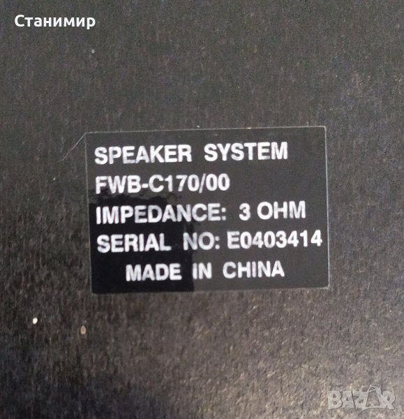 Продавам тонколона Philips FWB-C170/00- 1 брой. в много добро техническо състояние. С външни забележки, видими на снимките. Цена 13 евро.