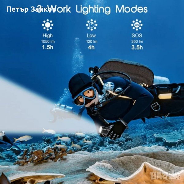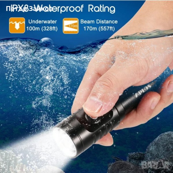 APLOS AP01 1050 лумена фенерче за гмуркане с индикатор за захранване, XM-L2 5000K водолазно LED акумулаторно, IPX8 водоустойчиво подводно 100m 328ft професионално потопяемо осветление