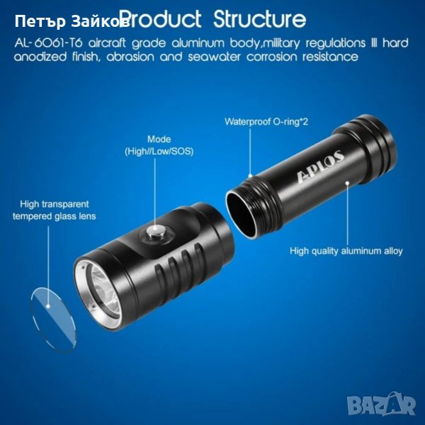 APLOS AP01 1050 лумена фенерче за гмуркане