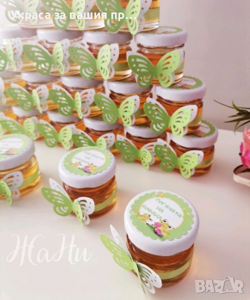Бурканче с мед подаръчета за гостите на бебешка погача на тема Жабка → Обява 39245225