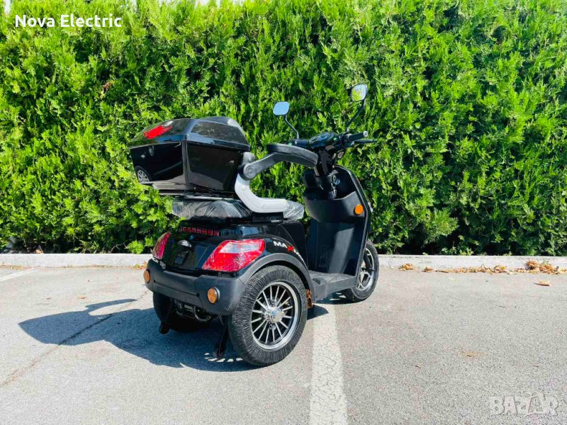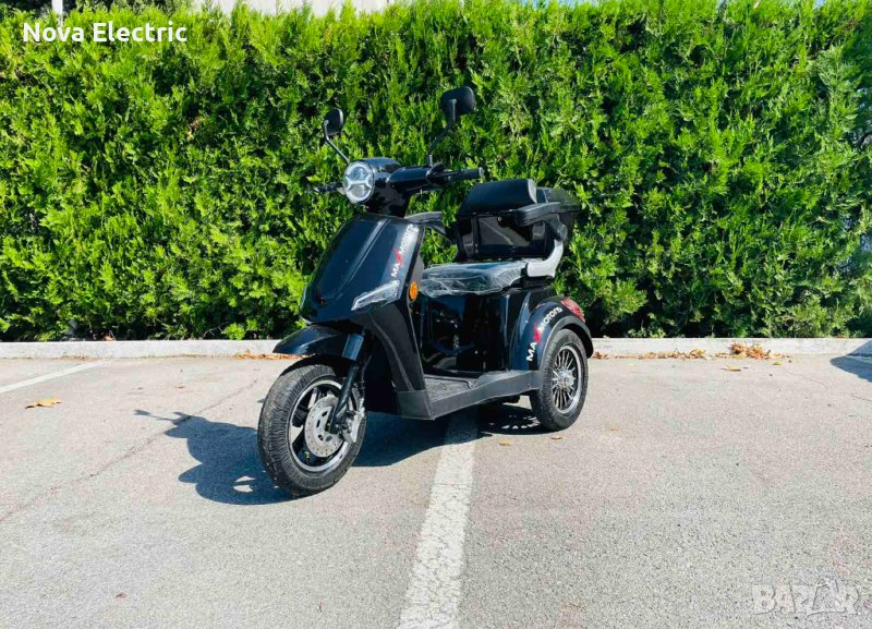 Триколката е с дигитално табло, три нива на скоростта, стопове, мигачи и габарити,LED фар. Предна и задна ръчни спирачки. Голям кош за багаж. Триколката е с вградена втора седалка за допълнителен пасажер, като самата седалка се движи във височина, което създава удобство за нисък или висок човек + подарък трета малка седалка.