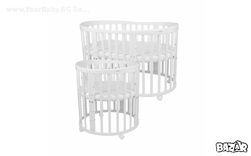 YourBaby Смарт 7в1 е развиващо се легло, което расте с вашето дете от 0 до приблизително 10 години. Развива се заедно с детето, за да посрещне непрекъснато променящите се нужди – и размери – на вашето растящото бебе, като същевременно поддържа успокояваща сефра с отличителната си и вътрешно позната овална форма (яицевидна). След като бебето ви достигне в етап в които се развива любопитството и катеренето започне, можете да премахнете едната страна в средата на на леглото за лесен достъп и и чрез това специалистите казват че се развива у тях чувството на свобода и индивидуалност.