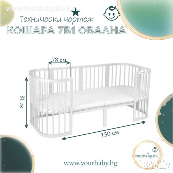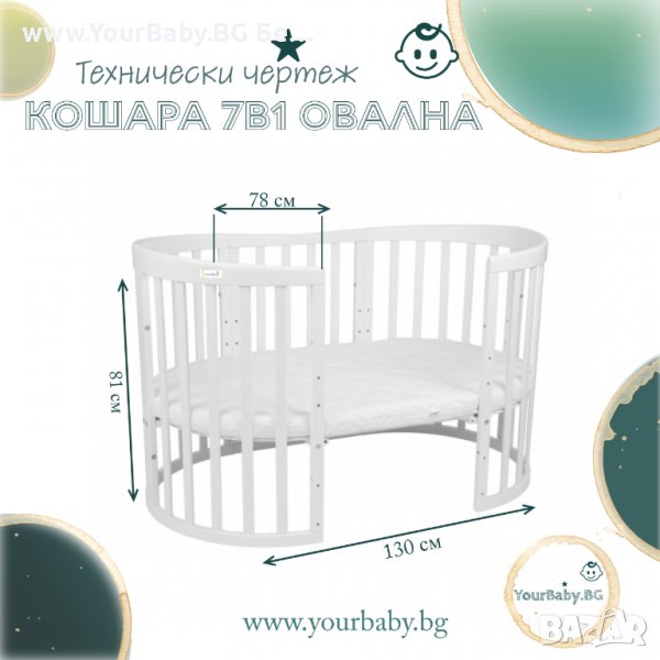 Техническа Информация относно Бебешка Кошара Смарт 7в1 Овал :
